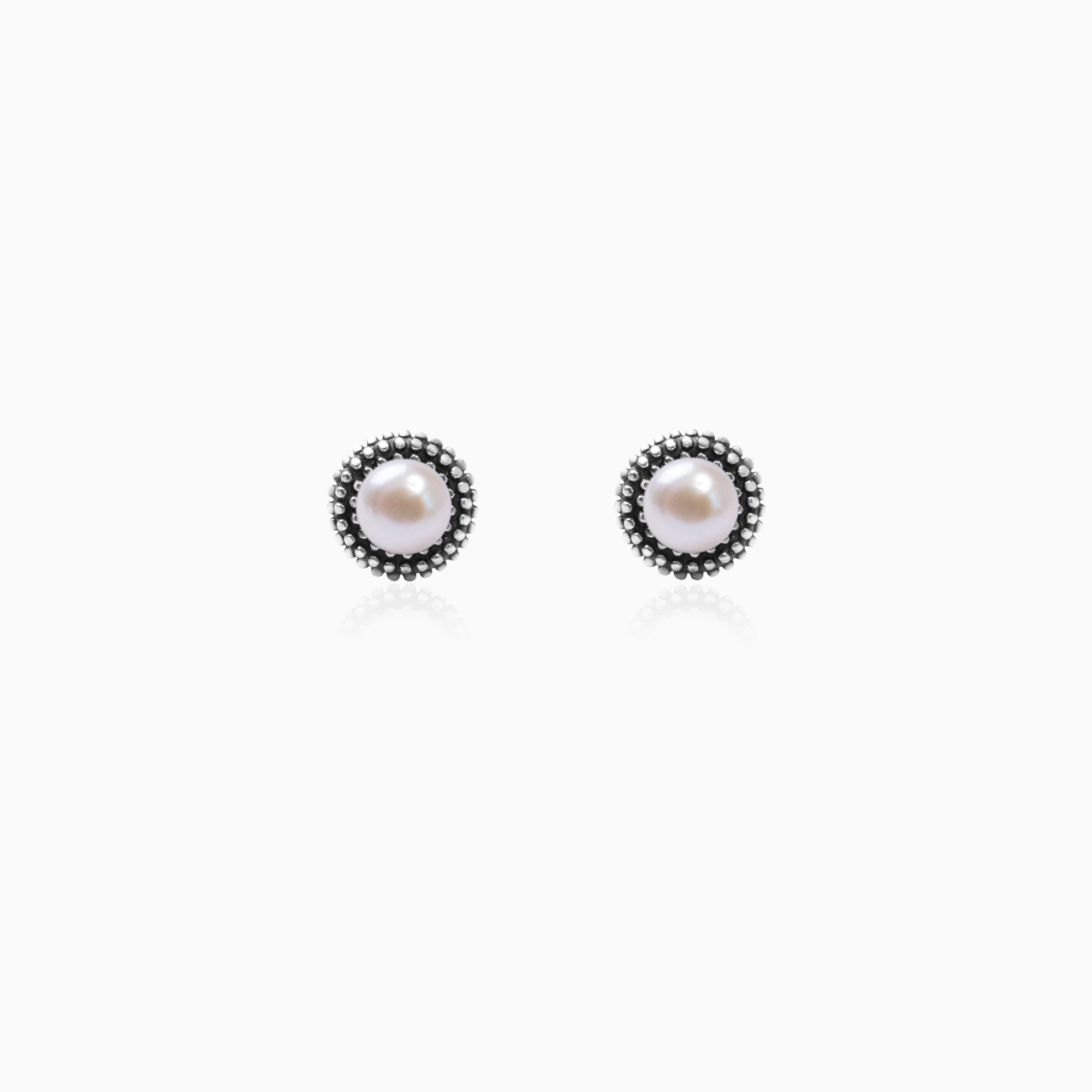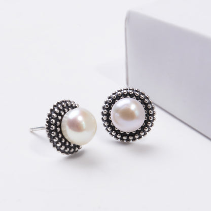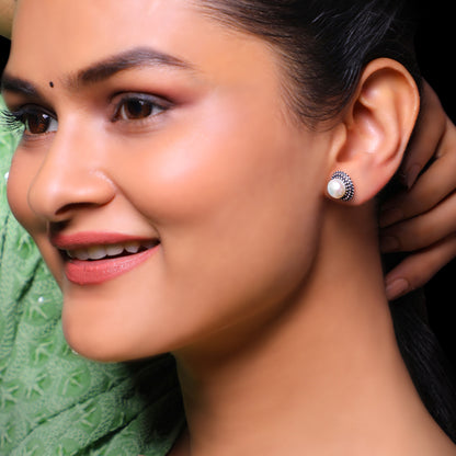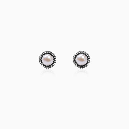Oxidised Silver Pearl Stud Earrings